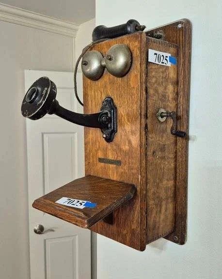 7025 Antique Stromberg Carlson Oak wall phone case.