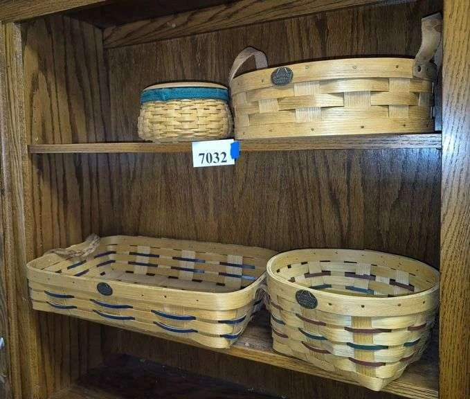 7032 Baskets including one longaberger, three peterborough, Etc.