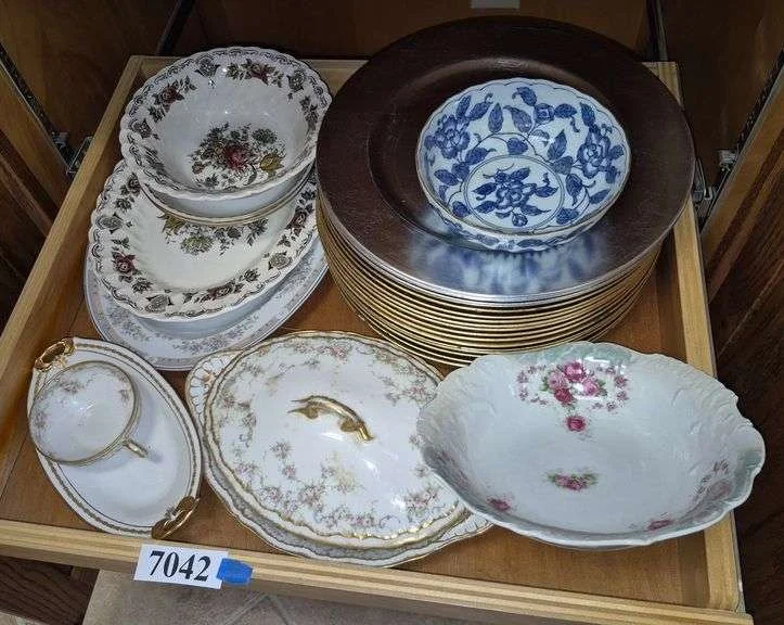 7042 Miscellaneous bowls and platters, plastic chargers, Etc