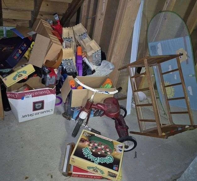 7083 Under stairs treasure trove of vintage vintage toys, games, Etc