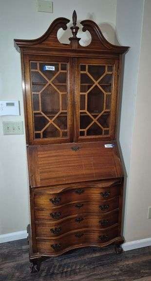 7099 Mahogany Governor Winthrop style desk with bookcase top and ball claw feet