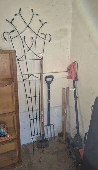 7117 Yard tools, metal garden trellis, Black & Decker electric edger