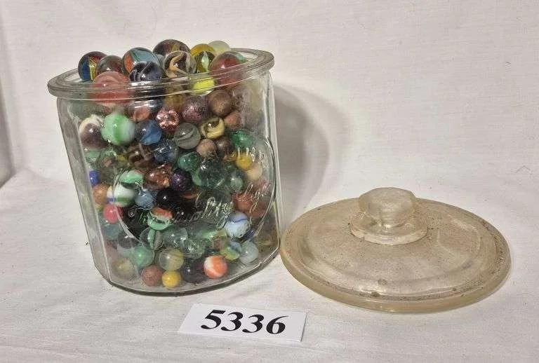 5336 Antique store cigar Jar full of marbles