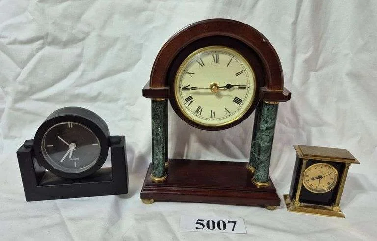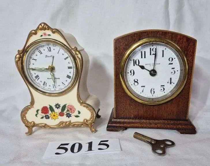 5007 Two battery Clocks, small metal Key wind alarm clock