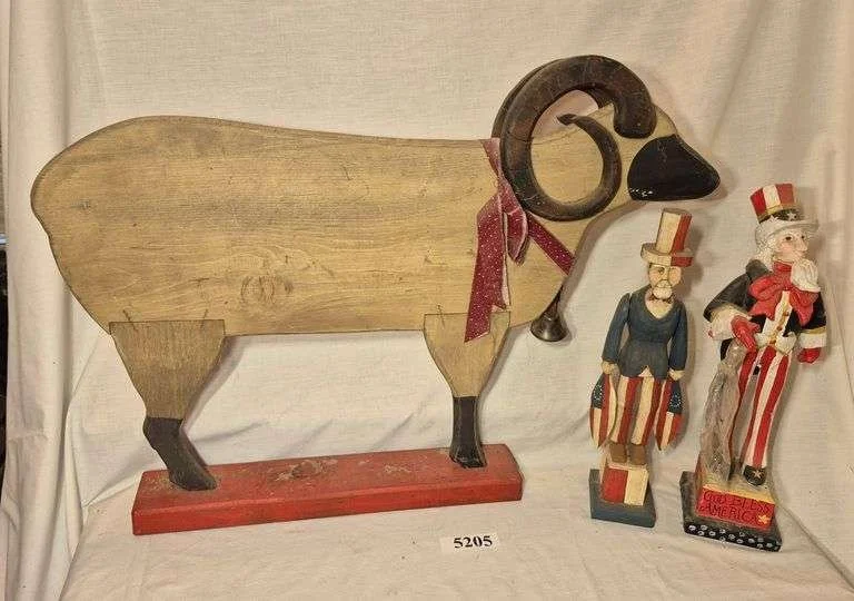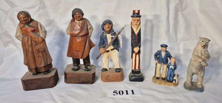 5011 Wood carved, ceramic, and resin polar bear, Uncle Sam, etc