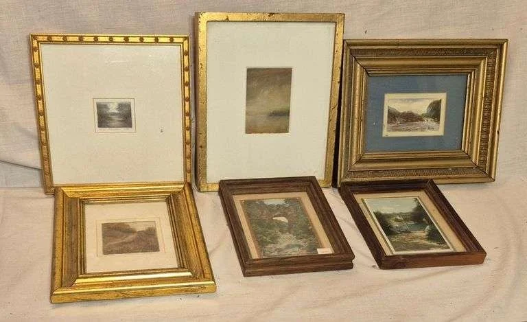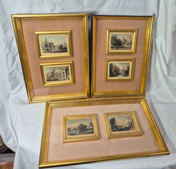 5027 Three framed pairs of miniature prints