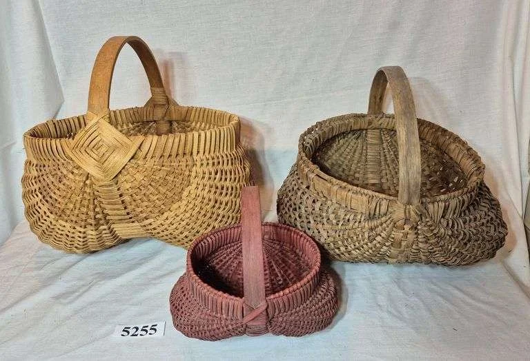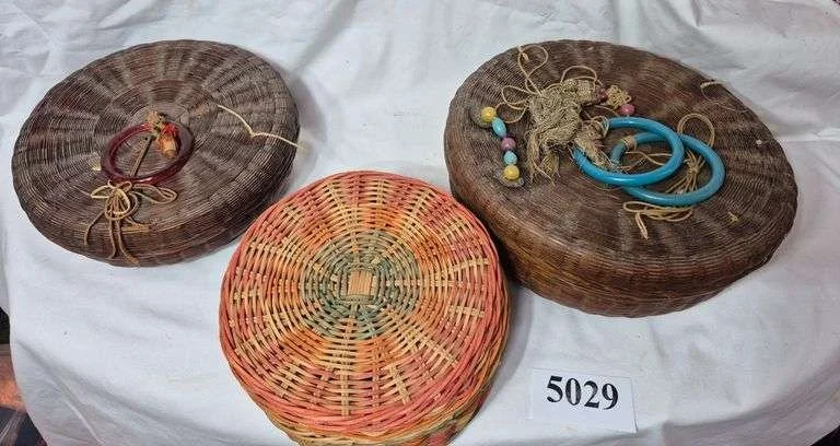 5029 Three vintage sewing baskets, sewing notions