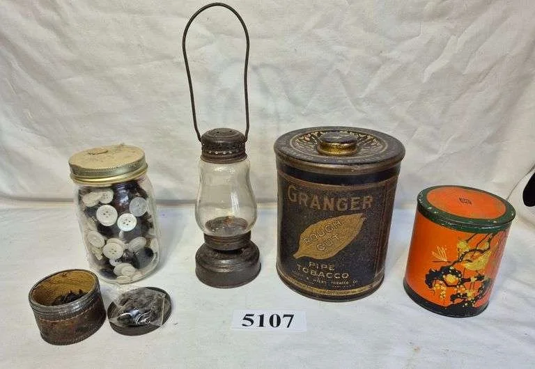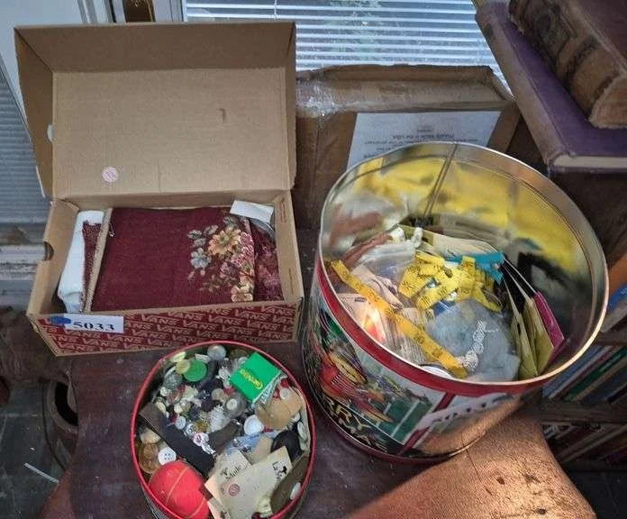5033 Buttons, sewing notions and supplies, tins, etc
