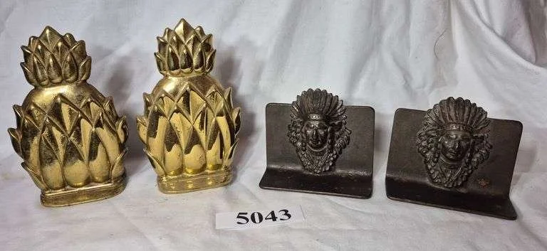 5043 Newport Pineapple bookends, Indian head metal bookends