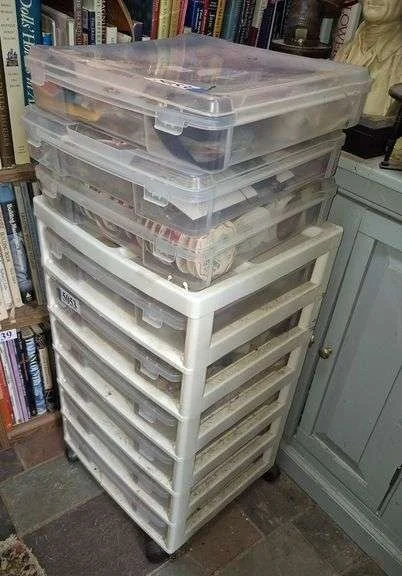 5053 Rolling organizer and extra totes full of sewing and craft items