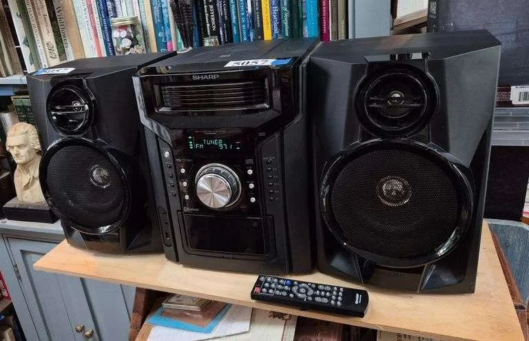 5057 Sharp compact 5 disc Bluetooth stereo with detached speakers and remote