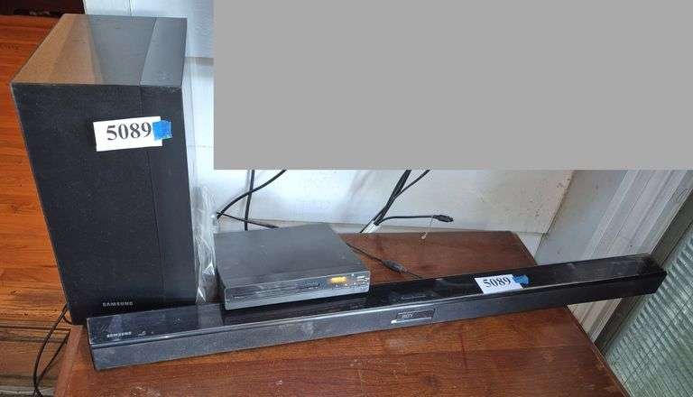 5089 Samsung soundbar and powered subwoofer, Jinhoo DVD player.