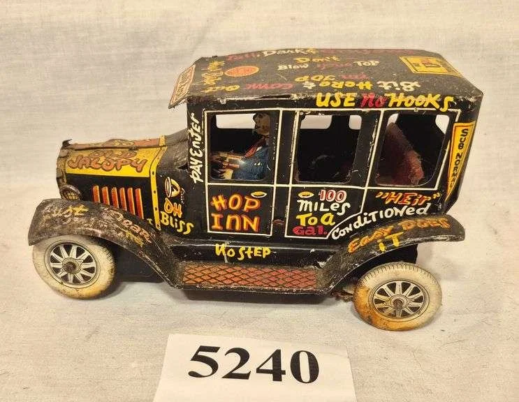 5354 Antique metal Dayton Hill Climber four seat toy car with driver