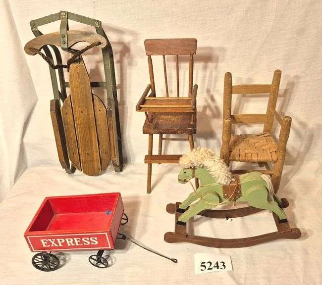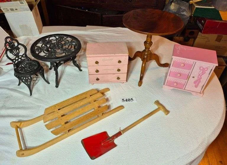 5405 Doll and dollhouse furniture, sled, sand shovel