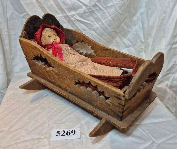 5331 Two vintage wood doll cradles