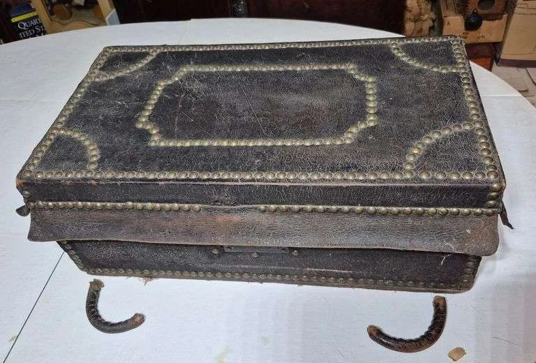 5361 Antique leather covered doll trunk