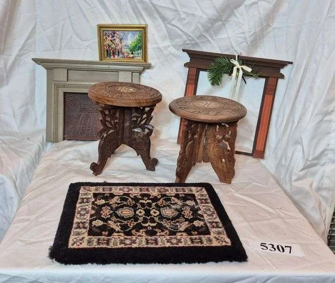 5359 Doll house furniture sized pictures, mirrors, Asian furniture set, rugs, other accessories