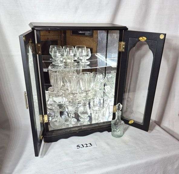 5323 Small display cabinet full of doll sized glassware, stemware, decanters, Etc