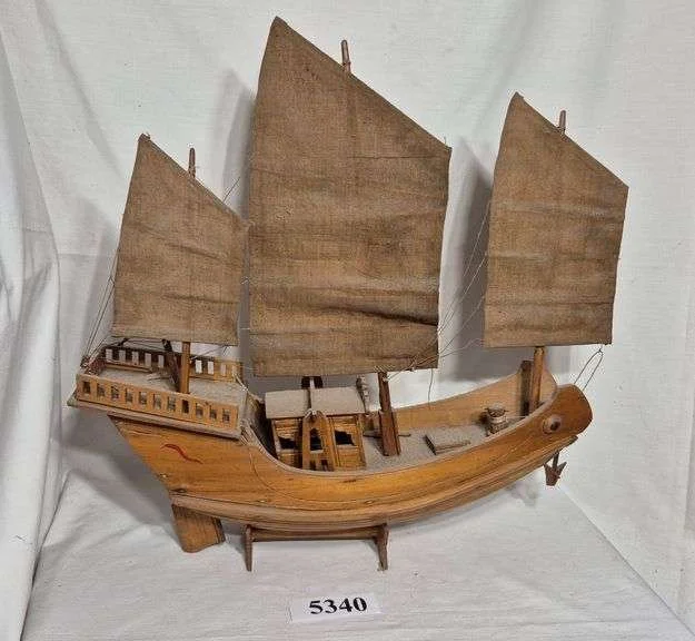5340 Wood Chinese Junk ship model on stand