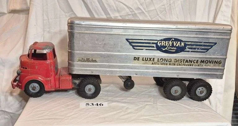 5346 Vintage metal toy gray van lines semi moving truck