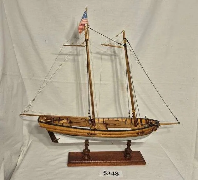 5348 Wood sailboat model on stand