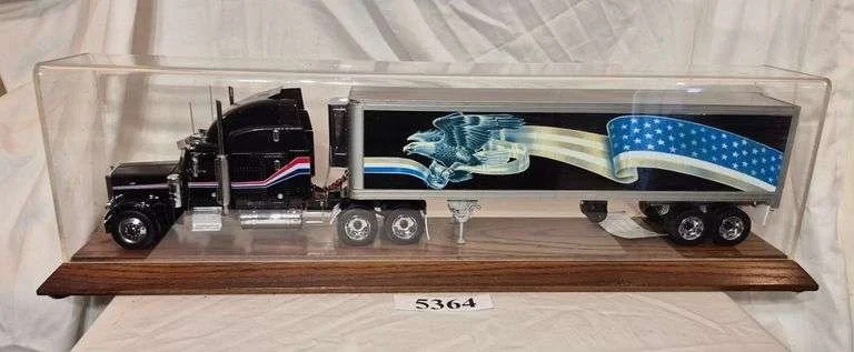 5364 Franklin Mint diecast Peterbilt semi truck with refrigerated trailer in display case