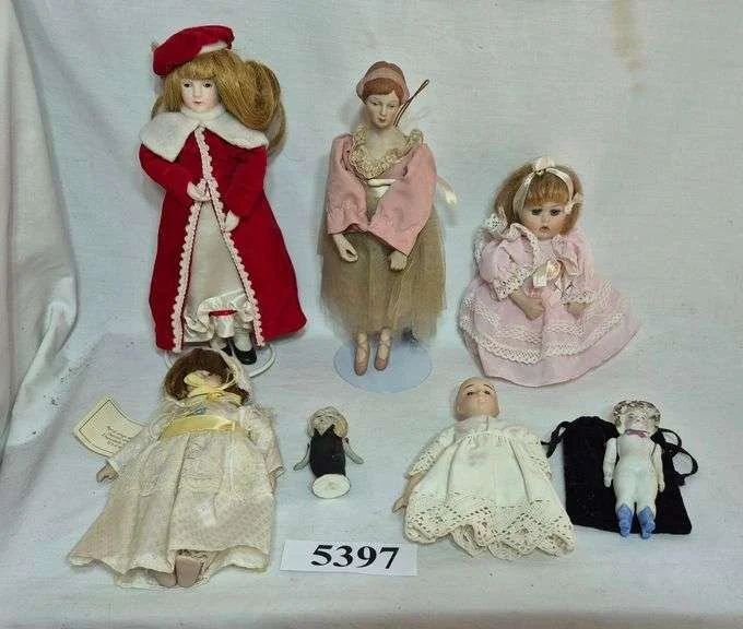 5397 Seven small and miniature dolls