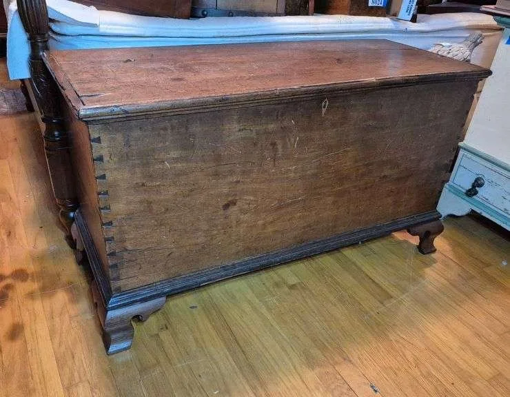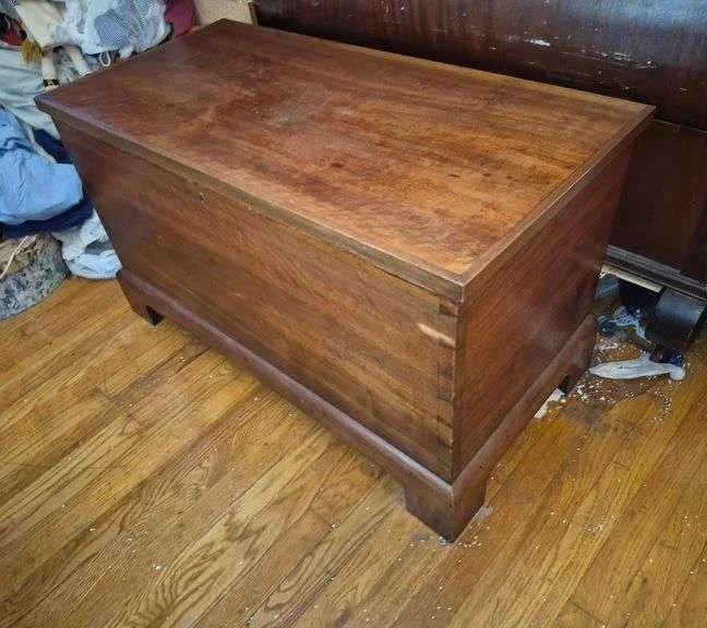 8050 Large antique two drawer painted all dovetailed blanket box with till