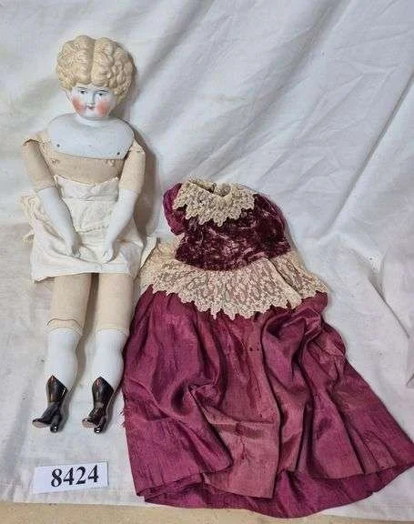 8359 Two antique dolls in kit form, ceramic head collector doll