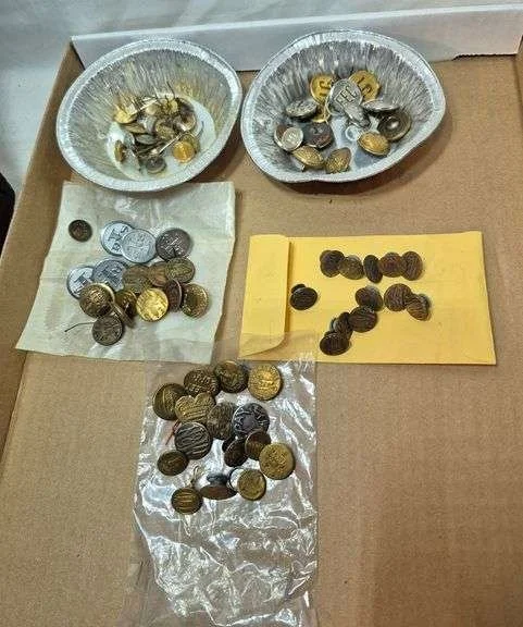 8065 Antique and vintage buttons and studs, most if not all railroad related