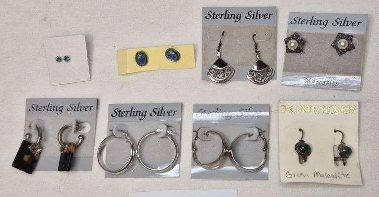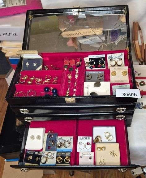 8060b Black jewelry box full of costume jewelry earrings, all confirmed pairs