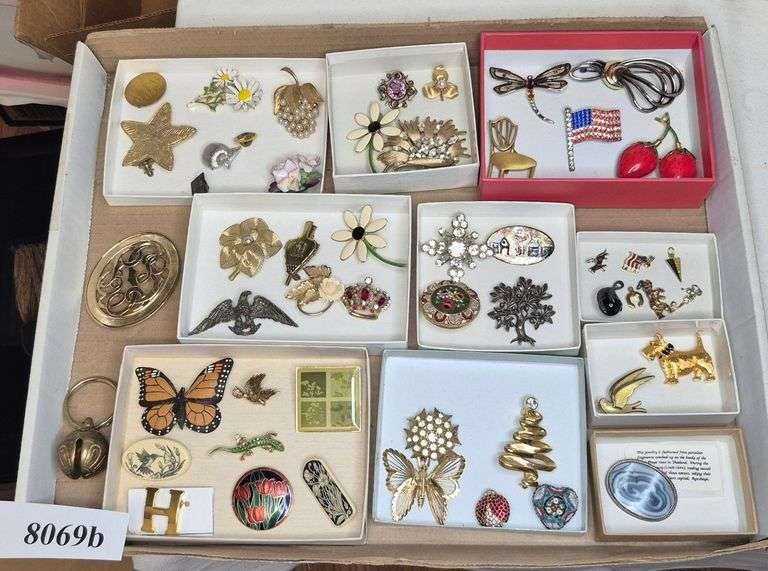 8069b Costume jewelry pins, brooches, pendants, etc.