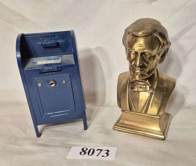 8073 Metal bust of Lincoln, U.S. mail box Coin Bank
