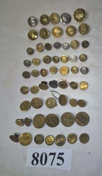 8075 Antique / vintage buttons and studs, most if not all railroad related