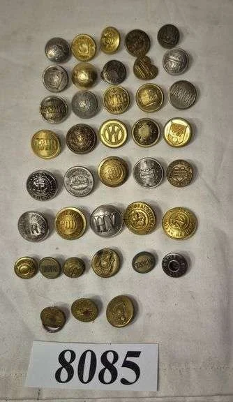 8085 Antique/ vintage buttons and studs, most if not all railroad related