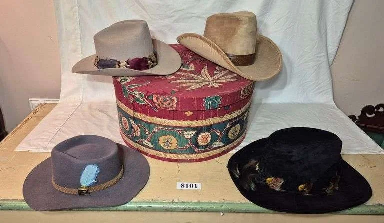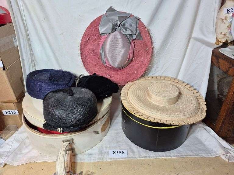 8358 Five vintage women's hats, vintage hat box, vintage hat case