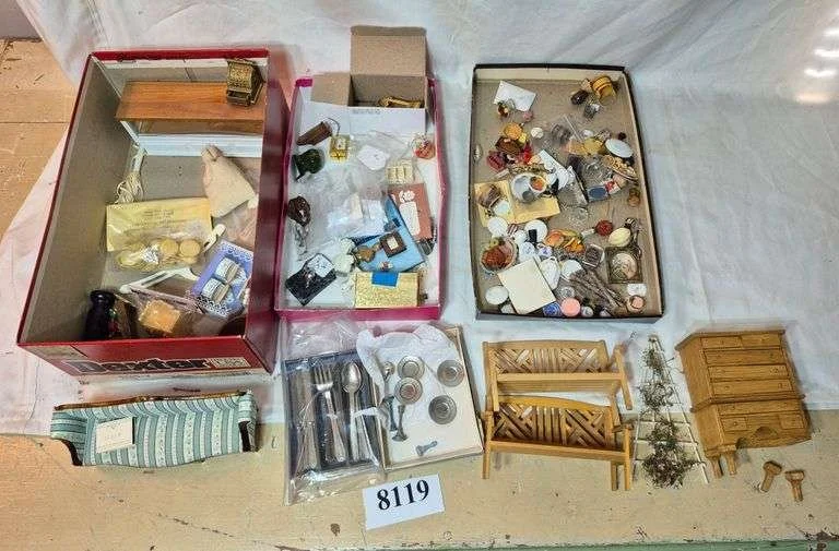 8350 Doll house furniture, accessories, doll mannequins, Etc