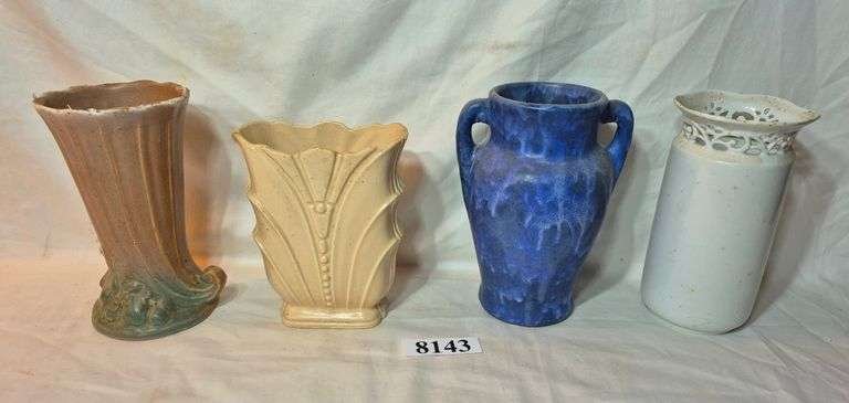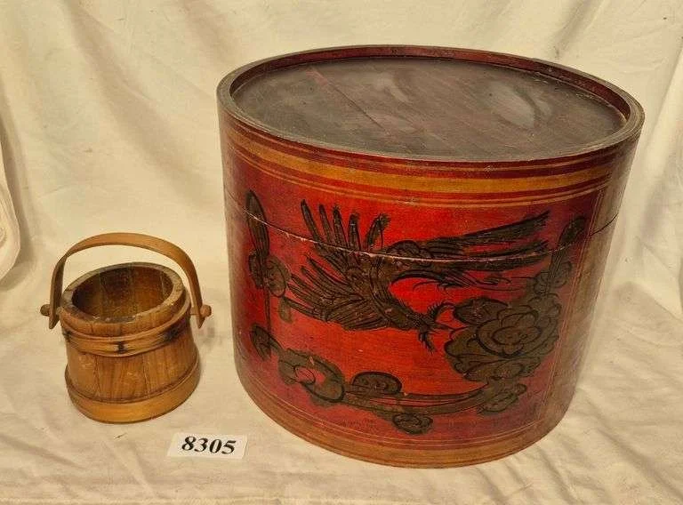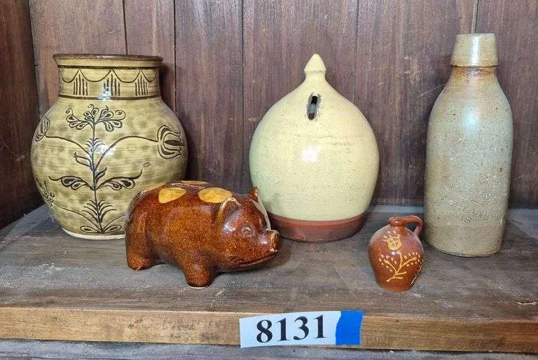 8023 Studio pottery vase, Peru vase, sewing basket, Asian bowls