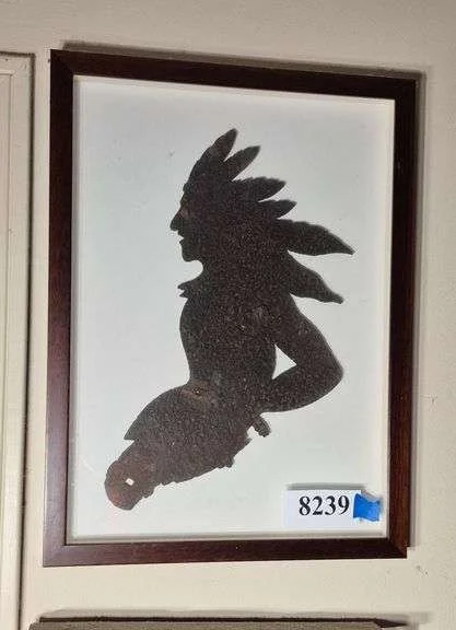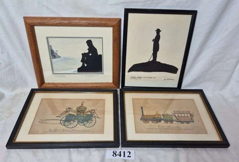 8412 Framed artists signed watercolor painting with silhouette, framed General Warren silhouette, two sma
