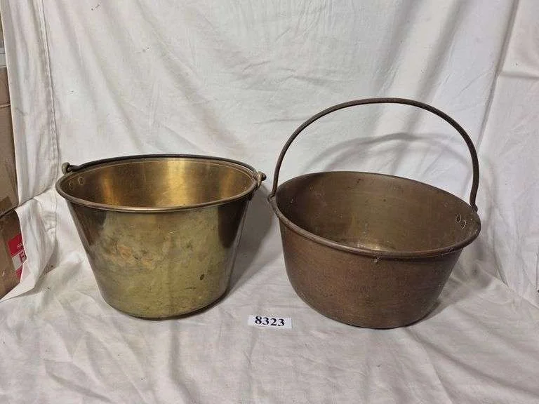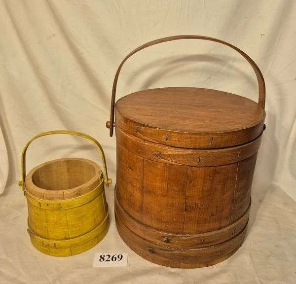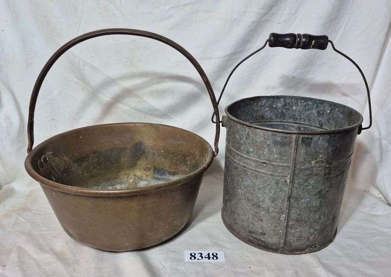 8348 Antique copper bucket, antique galvanized bucket with wood handle