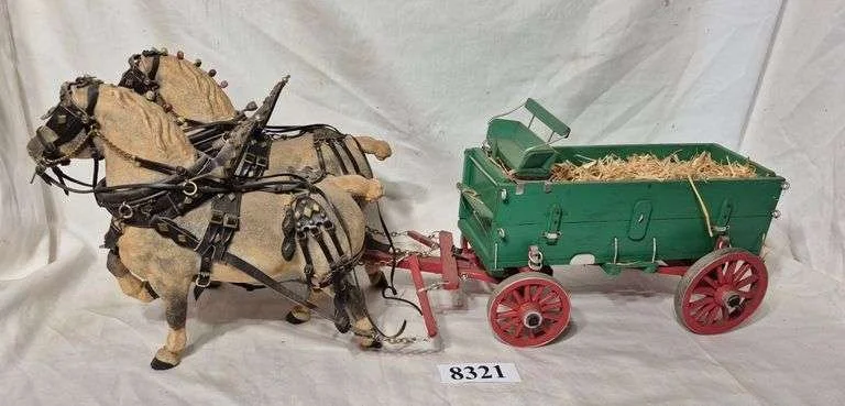 8338 Honey Creek Dairy Farm wood Dairy horse and wagon model with ceramic milk can