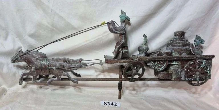 8045 Antique lightning rod with milk glass ball and metal horse weather vane