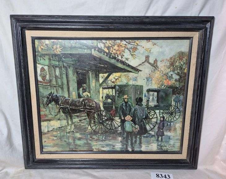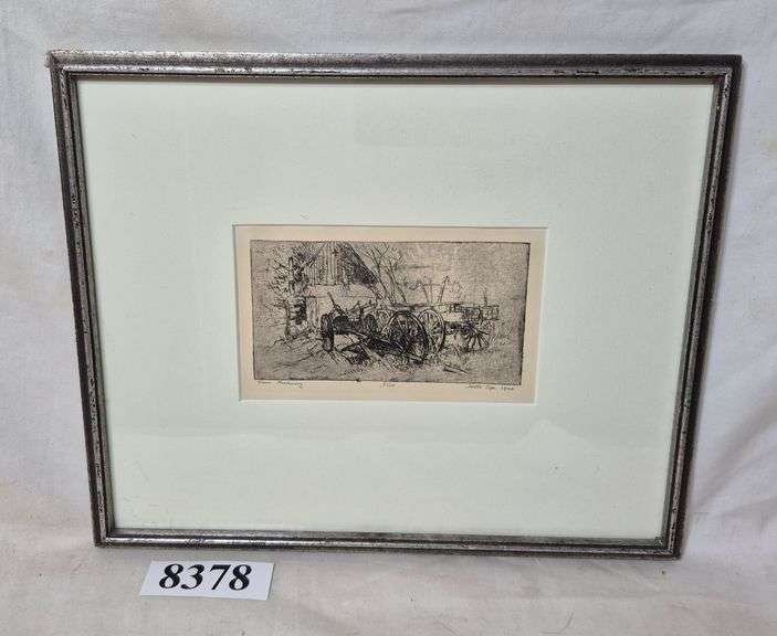8378 Framed artist signed signed Leslie Cope limited edition farm machinery print dated 1940
