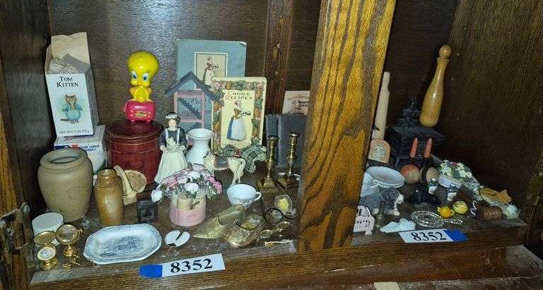8352 Miniatures, figurines, small cast iron stove, Etc