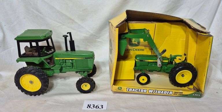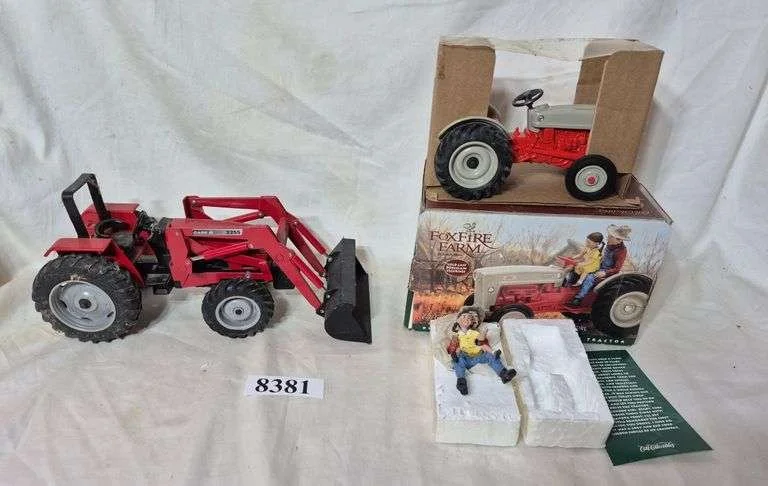 8381 Case c 90 diecast tractor with front loader, Ertl Foxfire Farm diecast tractor with farmer figurine