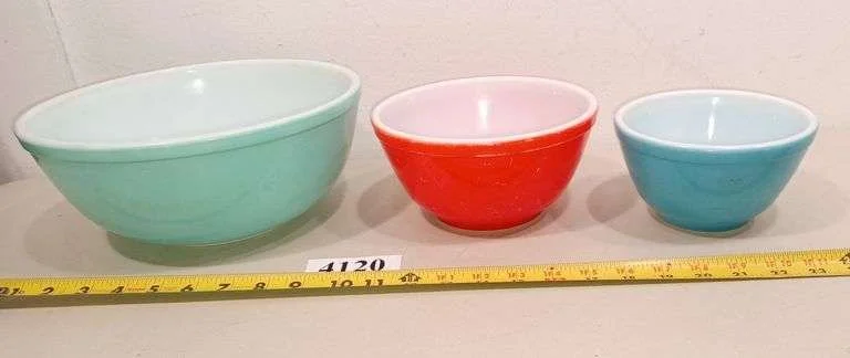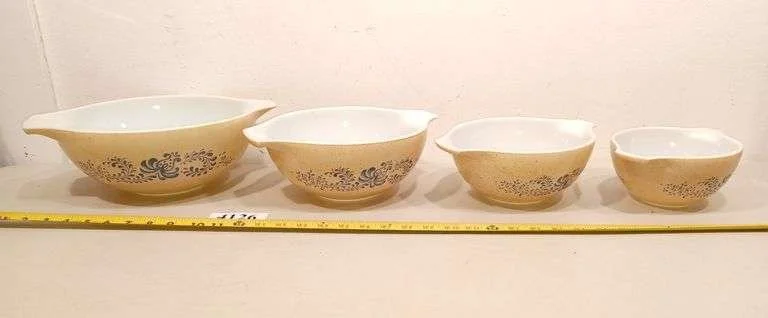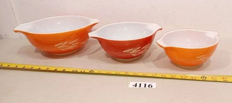 4116 Three piece Pyrex wheat pattern nesting Bowl set