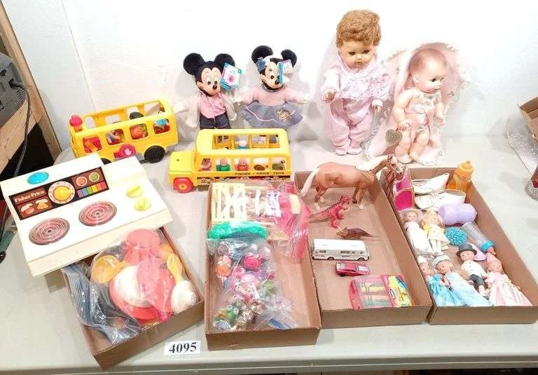 4095 Dolls and accessories, Mickey and Minnie mouse, Fisher-Price and other toys