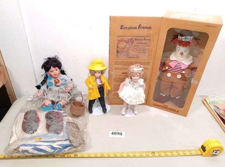 4090 2 Shirley Temple dolls, Native American doll with accessories, Snitznoodle doll in box