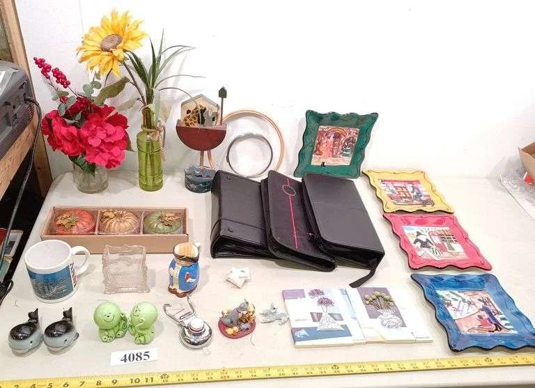 4085 Salt and pepper shakers, vases, plates, wall hangings, Etc.