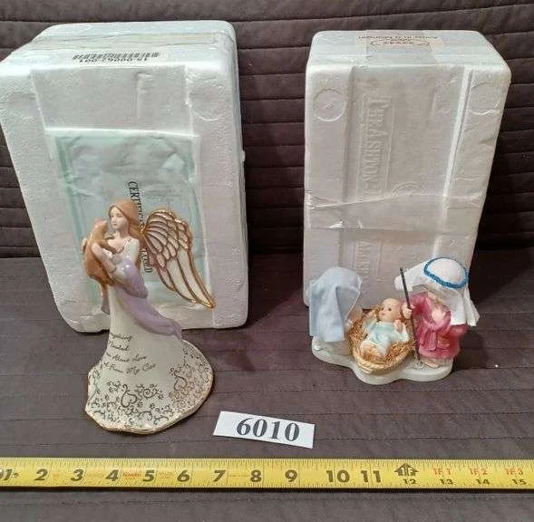4111 Angel with cat musical figurine, Nativity figurine, both in packaging